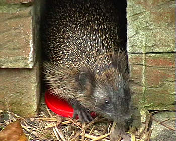 Seit dem 24. September ist er regelmäßig im Haus und läßt sich Rosinen und trockenes Igelfutter schmecken. Seit Ende Oktober hält er in seinem Haus Winterschlaf.