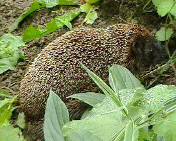Wenige Tage später - am 13. August 2005- entdeckten wir unseren Igel putzmunter nachmittags in seinem Hauseingang. Wir sprachen mit ihm und er war wie immer sehr zutraulich. Als wir mit seiner Lieblingsspeise (Rosinen) kamen, gab er Freudenlaute von sich, die er auch während des Fressens noch von sich gab. Zufrieden verließ er anschließend das Haus und trollte sich von dannen.