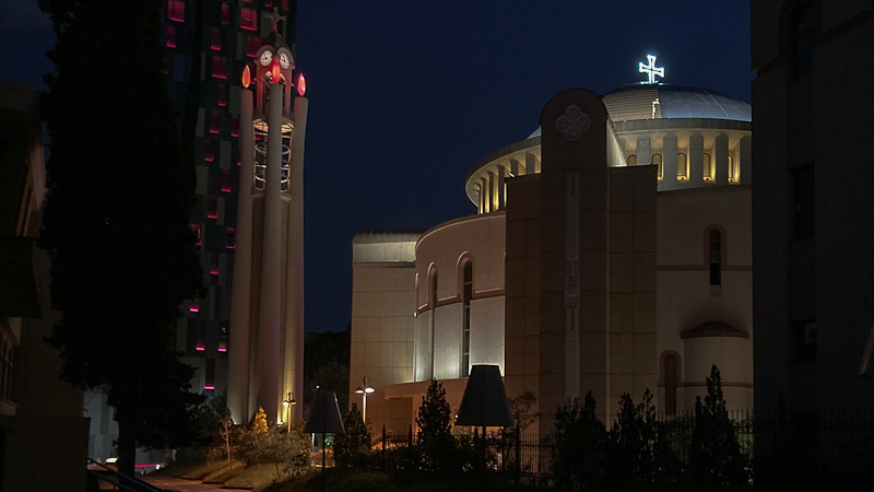 Bei einem Bummel am Vorabend nahmen wir die letzten Eindrücke des nächtlichen Tiranas in uns auf.