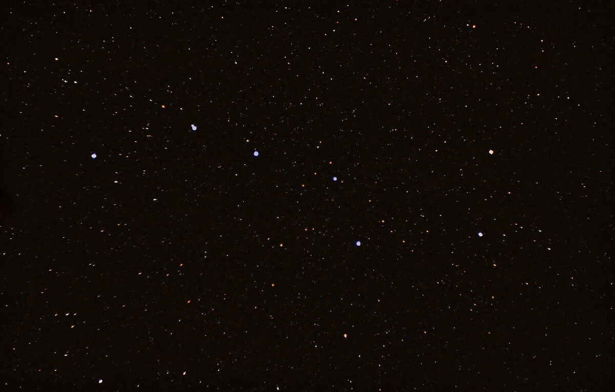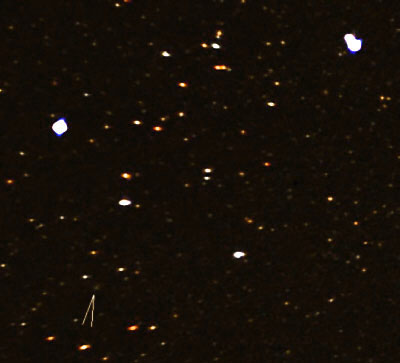 aufgenommen am 14. April 1996 von 20:56 bis 21:06 UT Auffallend ist der Stern Dubhe (im Kasten rechts oben), rosa leuchtend. Im unteren Dateil mit veränderter Gamma-Einstellung ist die Galaxie M51 zu erkennen. ![]() Bildausschnitt mit M51: ![]()