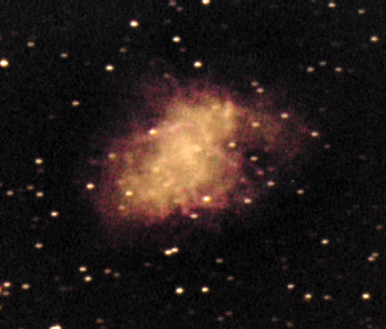 M1 erscheint . Er ist 6300 Lichjahre entfernt und 11 x 7 Lichtjahre groß. Im Teleskop erscheint er als 6'x4' großer nebliger Fleck.