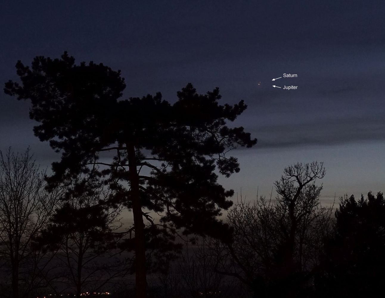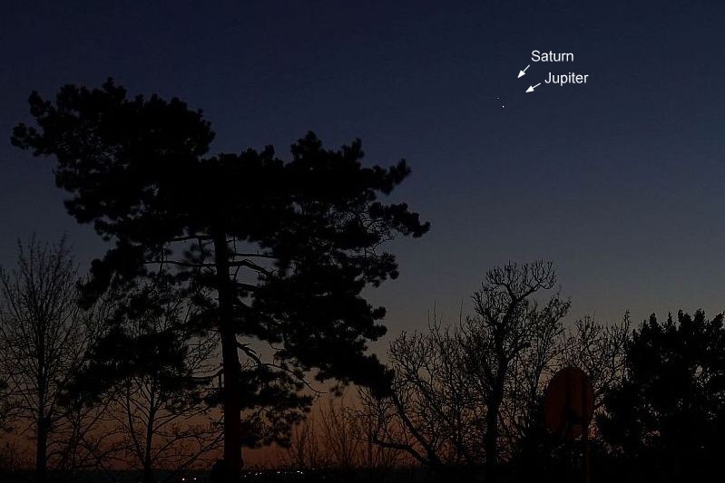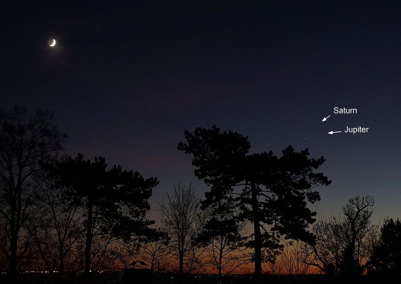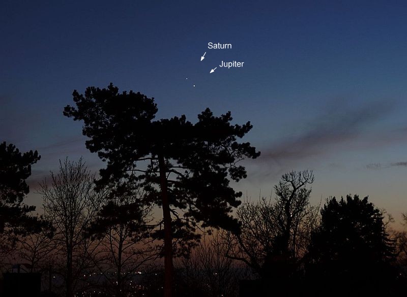 Jupiter und Saturn näherten sich auf 6' (seit ca. 400 Jahren wieder, nächste Annäherung erst wieder 2080). Jupiter war 886 Mio km und Saturn ca. 1620 Mio km von der Erde entfernt.