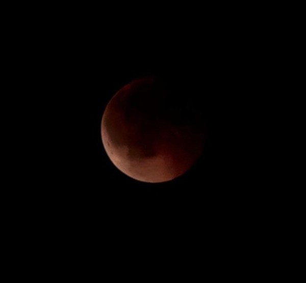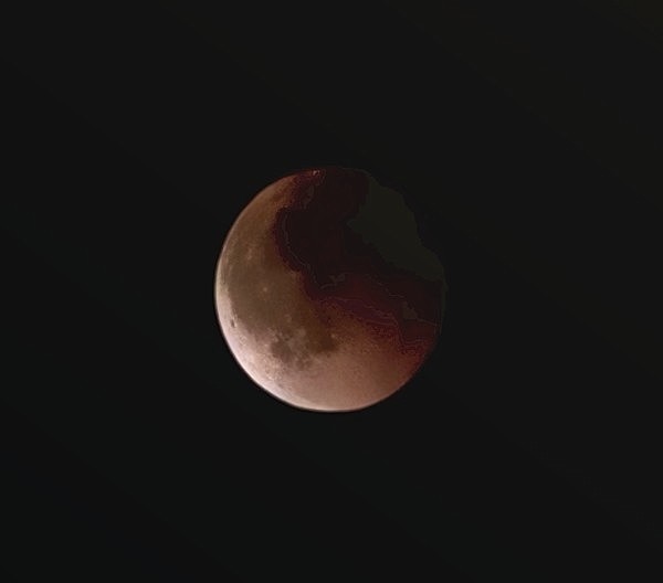 Der Mond erschien in einer kupferroten Färbung. Die Farbe des total verfinsterten Mondes ist von Finsternis zu Finsternis sehr unterschiedlich. Ich hatte schon einmal einen verfinsterten Mond beobachtet, der in einer silbern-grauen Farbe erschien.