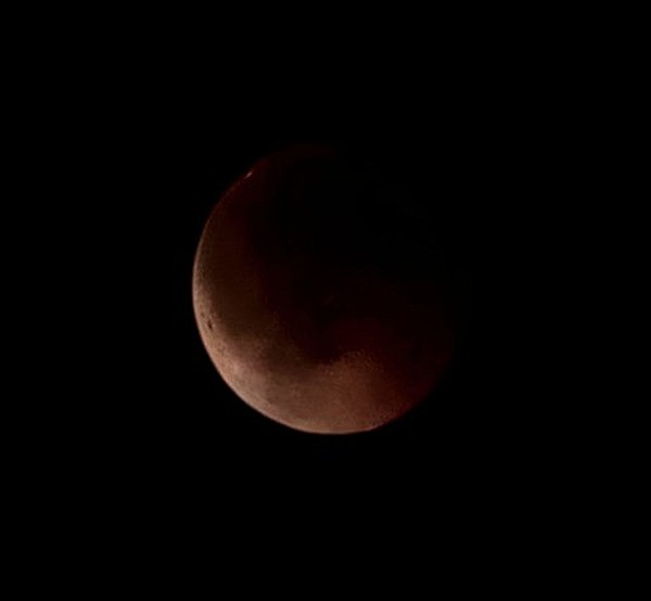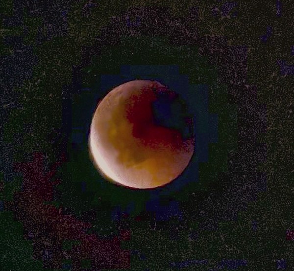 Nach dem Ende der Totalität wurde der aufgehellte Bereich des Mondes allmählich sehr hell. Die normale Vollmondhelligkeit wurde erst später erreicht, da der Mond sich noch lange im Halbschatten der Erde befand.
