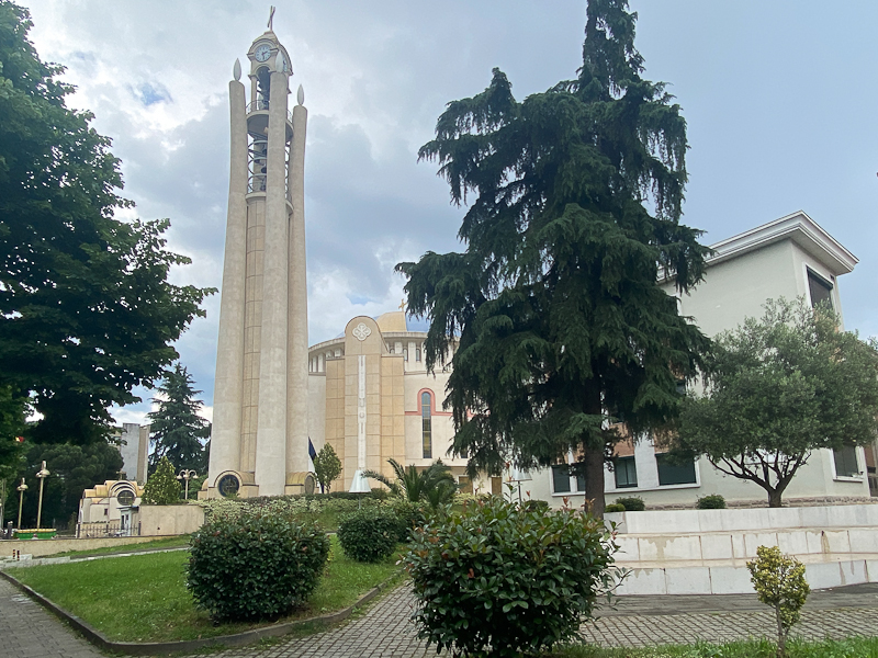 Zwischen Skanderbeg-Platz und Rinia-Park fällt der Neubau der orthodoxen Kathedrale der Wiederauferstehung Christi (Katedralja e Ringjalljes se Krishtit) auf. Diese schöne moderne Kirche konnten wir uns auch von innen anschauen. Die Kirche wurde 2012 vollendet.