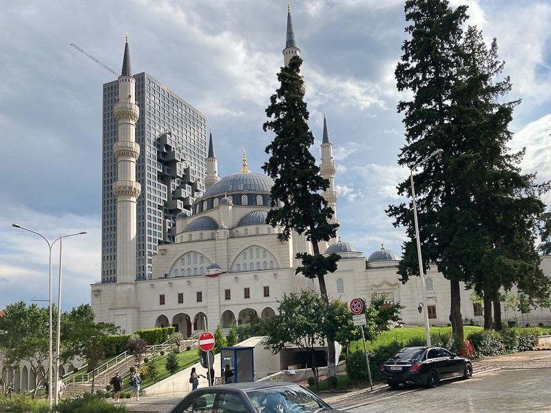 Da die Größe der Et'hem-Bey-Moschee nicht mehr ausreichend ist, wurde die Große Moschee ebenfalls im Stadtzentrum gebaut. Diese war zum Zeitpunkt unseres Besuches noch nicht eröffnet, aber im Grunde genommen fertiggestellt.
