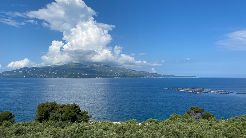 Neben dem Tourismus gehört die Dorade-Fischzucht zu einer wichtigen Einnahmequelle. Ksamil liegt an der engsten Stelle der Straße von Korfu.