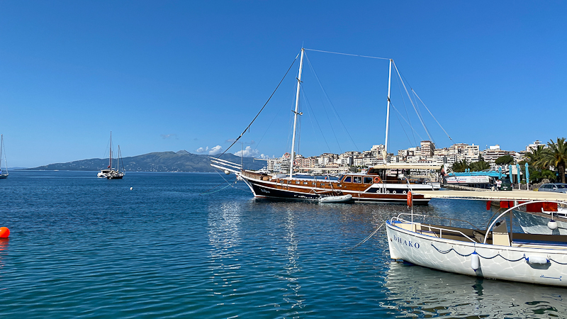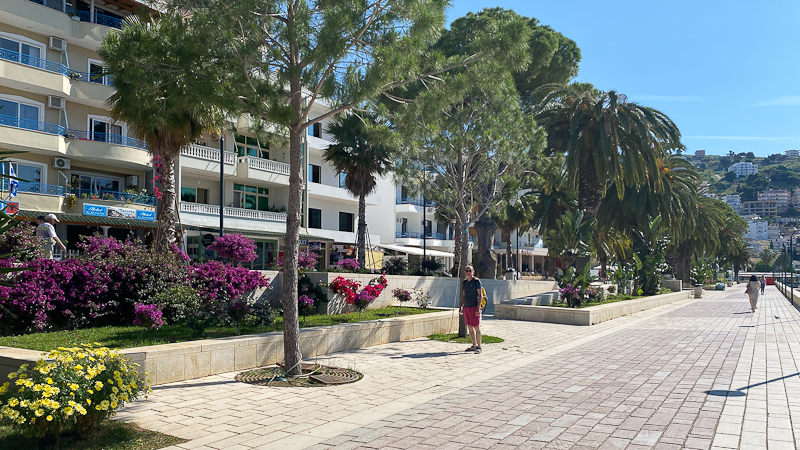 Wenn man auf der Strandpromenade spaziert, hat man den schönen Blick zur Burg Lekuresi.