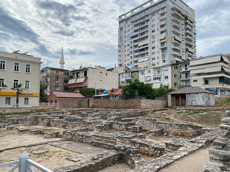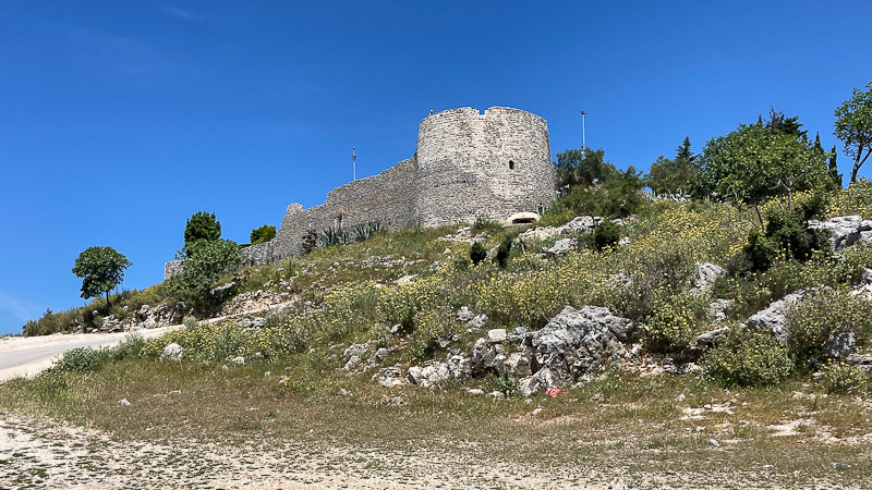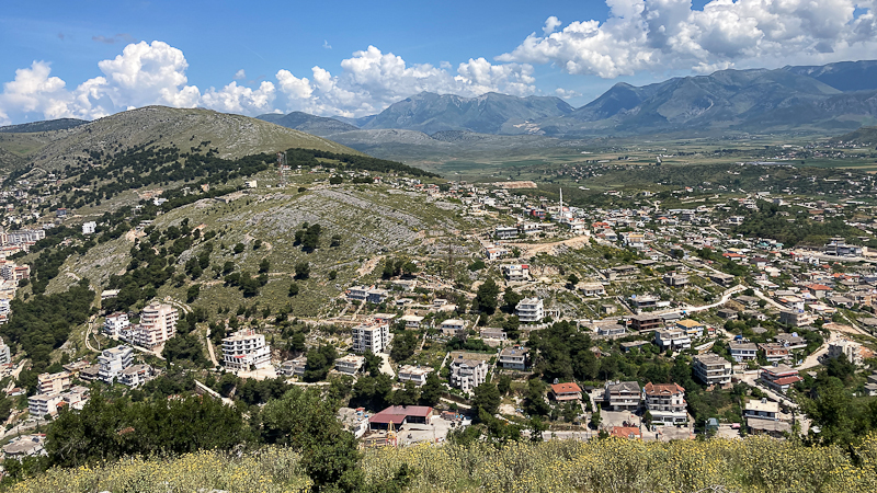 Diesen Tag, der zur freien Verfügung stand, nutzten wir, um eigenständig zur 1537 erbauten Burg Lekuresi zu wandern. Eine befestigte Straße führt zur Burg, die wir aber nicht gehen wollten. Stattdessen nutzten wir einen in der Karte angegebenen Wanderweg. Leider hörte der Weg auf halber Höhe auf, da sich dort eine Großbaustelle befand. Es war viel beschwerlicher als gedacht, ohne Weg über Steine und Gestrüpp den Weg fortzusetzen. Schließlich winkte uns ein älterer Albaner und führte uns durch die unwegsame Gegend fast hinauf zur Burg, wo wir die Straße erreichten. Wir verständigten uns mit dem hilfsbereiten Mann nur durch Körpersprache, da er weder englisch noch deutsch und wir kein albanisch sprachen.