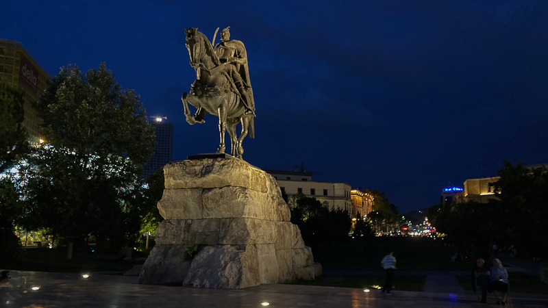Bei einem Bummel am Vorabend nahmen wir die letzten Eindrücke des nächtlichen Tiranas in uns auf.