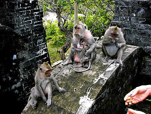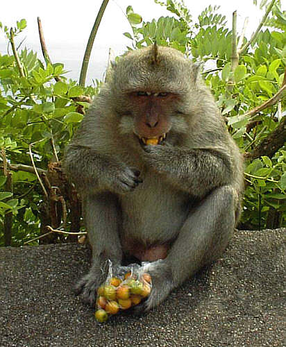 Neben dem Affentempel gibt es noch einen Affenwald in Pancasari, der mit dem Auto über Sepentinen erreichbar ist. Dort sind die Affen nicht so dreist. Futter nehmen sie aber auch sehr gerne. Außer diesem gibt es noch einige andere Affenwälder. | |||||