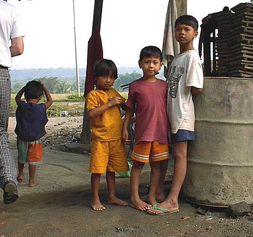 Kleine Kinder werden zwecks Betreuung und Aufsicht zur Ziegelei mitgenommen:
