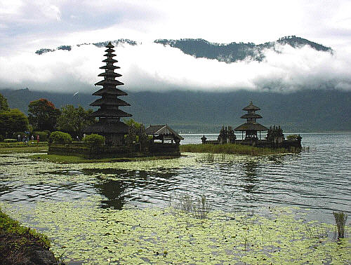 Tempel auf Bali Auf Bali gibt es viele Tempel, jede Familie und jedes Dorf hat seine eigenen Tempel und dann gibt es noch viele weitere Tempel. Ausflugsziel zum Beispiel ist der hier dargestellte Seetempel Ulun-Danu-Tempel am Bratansee. Dieser Tempel weist deutliche buddhistische Züge auf.