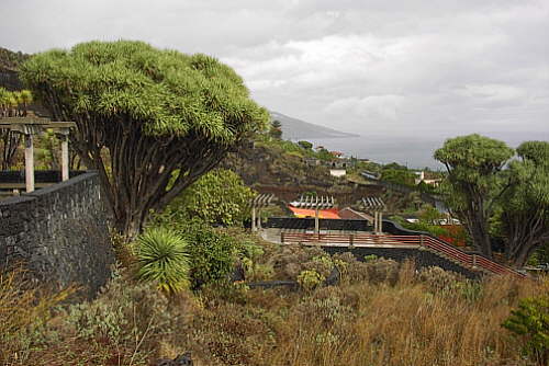 La Palma ist eine sehr grüne Insel (La Isla Verde), typisch sind unter anderem große Drachenbäume sowie terrassenförmig angelegte Bananenplantagen (Exportgut Nr. 1).