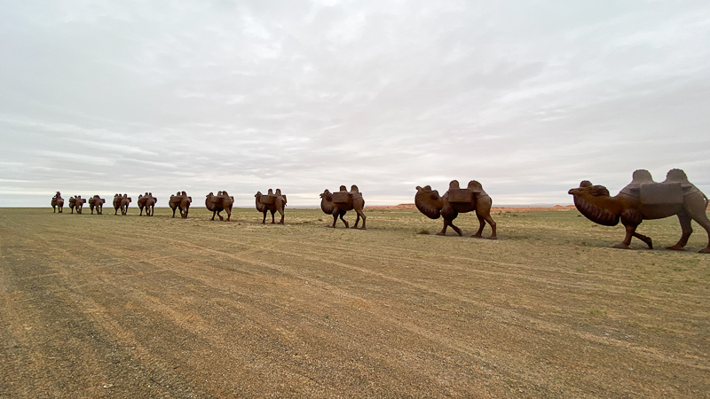 Klippen an. Sie stellt den Transport auf der Seidenstraße, dem Handelsweg zwischen Europa und China, dar.