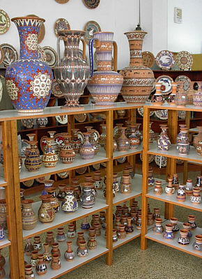 Afantou - hier besuchten wir eine Töpferei. Einmal gebrannter Ton ist Terrakotta (immer braun), zweimal gebrannter Ton ist Keramik und wird anschließend bemahlt.